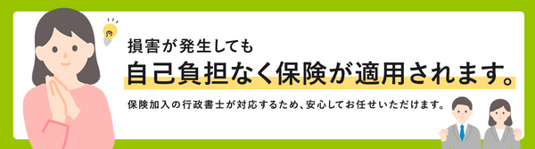 また、保険加入の行政書士が対応いたしますので、行政書士が行った申請によってあなたが損害を受けた場合、あなたが保険料を支払うことなく保険が適用されることになります。